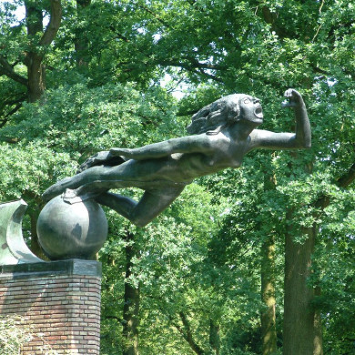 RADIOMONUMENT ter gelegenheid van de tot stand koming van de eerste radioverbinding tussen Nederland en Nederlands Oost-Indië. De sculptuur is gemaakt door A. Termote, het geheel werd ontworpen in samenwerking met D. Roosenburg. Het monument dateert uit 1936 en bevindt zich in het stadswandelpark, in het stadsdeel Stratum.
