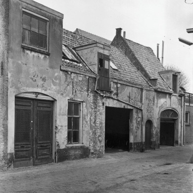 Ingang naar de Lutherse Kerk, die geheel ingesloten en verborgen ligt achter de oostelijke bebouwing van de Grote Markt. Van steunberen voorzien zaalgebouw uit 1784, verbouwd in 1837, uit welke tijd de hoge spitsboogvensters met witte houten roeden zullen dagtekenen.