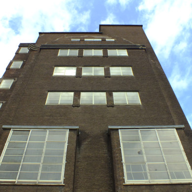 Het gebouw heeft een skelet van kolommen en balken van gewapend beton, waarin dito vloeren zijn opgehangen. De vloer van de brouwzaal is versterkt met deels geklonken, deels gelaste gekoppelde ijzeren kolommen en balken, veelal bestaande uit gestandaardiseerde INP-profielen. De gevels zijn alle bekleed met rode baksteen en worden afgesloten door overstekende betonnen banden. Tegen de plint zijn donkerbruine wandtegels gezet. De gevels hebben alle een asymmetrische indeling. De straatgevel is, evenals de achtergevel, op de eerste etage, ter plaatse van de brouwzaal, voorzien van twee op betonnen uitkragingen opgemetselde erkers onder plat dak. De ijzeren vensters hebben een kleine roedenverdeling en zijn voorzien van klapramen. In de representatieve ruimten, zoals de brouwzaal, zijn de vensters voorzien van glas-in-lood panelen. Op de hogere verdiepingen zijn telkens drie gekoppelde ijzeren vensters van liggend formaat geplaatst. In het terugliggende deel van deze gevel ijzeren draaivensters. Hoog tegen de voorgevel een vlaggenmasthouder, bestaande uit kunststenen sokkel en smeedijzeren houders. In de noordwestelijke gevels is in de noordelijke hoek de liftschacht geplaatst, die herkenbaar is aan een over de volle hoogte van het gebouw, van plint tot daklijst doorgaand ijzeren strookvenster, met roedenverdeling. Bijzonder is dat dit venster om de hoek over de achtergevel is doorgetrokken. De gehele schacht is voorzien van een verlichting. De glazen liftkooi (vroege vorm van scenic elevator), voorzien van telefoon, is authentiek. Aangrenzend bevindt zich het trappenhuis, voorzien van betegelde betonnen steektrappen. Deze hebben een uit gestandaardiseerde ijzeren buizen en koppelstukken samengestelde leuning. In het trappenhuis een tegellambrizering met veelkleurige motieven op een geel-bruin fond. In de westelijke gevel verder ijzeren draaivensters met horizontale roedenverdeling. Tegen de achtergevel een hijsbalk en een noodtrap.