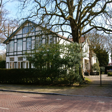 LANDHUIS "De Haghe" in Chaletstijl herbouwd in 1906 door het aannemersbedrijf A.N. Sprangers (Princenhage) voor de burgemeester van Princenhage F.C.V. Dommers van Polderveldt. Het landhuis ligt midden in een Engelse landschapstuin uit 1908.