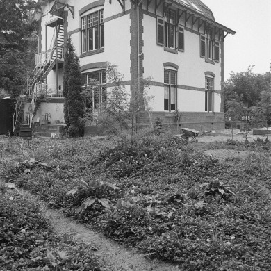 De vleugel aan de westelijke zijde heeft in de zuidelijke gevel op de begane grond een vierruits venster; aan de westelijke zijde een later aangebouwde, weinig uitspringende houten serre; aan de noordelijke zijde een paar openslaande tuindeuren met kleine roedenverdeling. Aan de westelijke zijde grenst deze vleugel aan de garage; op de verdieping geeft een deur toegang tot het balkon op het dak van deze garage.