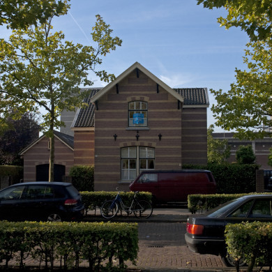 De voormalige DIENSTWONING voor een gevangenisbewaarder is samen met de vijf naastgelegen identieke dienstwoningen ontworpen in 1883 door J. F. Metzelaar bij de strafgevangenis.