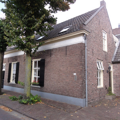 Tegen de achterzijde en aangrenzend aan de noordelijke zijgevel staat een moderne, in stijl aangepaste aanbouw met onder meer een garage.