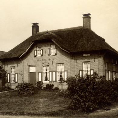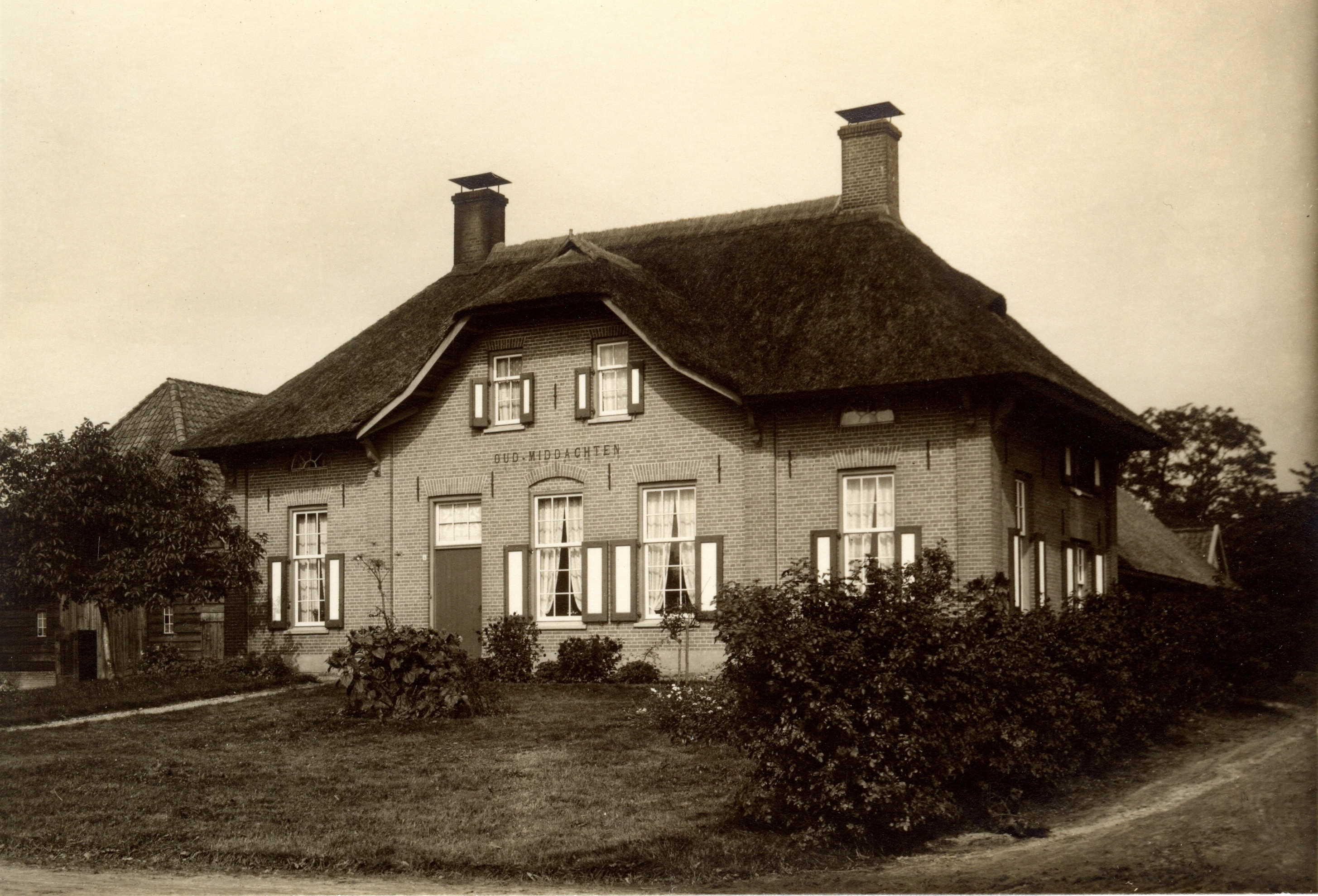 De BOERDERIJ OUD MIDDACHTEN is gelegen op een oude bouwplaats en werd in 1908 herbouwd naar een ontwerp van de Dierense architect G.J. Uiterwijk (1863-1937). De boerderij is ontworpen in een historiserende trant waarbij ondermeer teruggegrepen is op de Nederlandse laat zeventiende-eeuwse en achttiende-eeuwse bouwkunst. In de jaren tussen 1897 en 1914 vond er een grootschalig herstel van het landgoed plaats. In deze jaren werden verschillende pachtboerderijen ver- of herbouwd waarbij het kasteel en met name de bouwhuizen vaak als inspiratiebron dienden. Hierdoor kregen de boerderijen over het algemeen meer allure dan voorheen en bovendien sloten ze stilistisch gezien beter op de hoofdgebouwen van het landgoed waardoor de samenhang versterkt werd. De boerderij heeft een voortuin met een gazon en een beukenhaag.