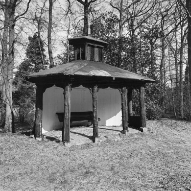 Omschrijving onderdeel 7: priëlen(met lattenbanken met ijzeren onderstel) bij Van Limburg Stirumweg 2 7.1 PRIEEL aan het einde van de bloementuin als blikvanger van het gezicht vanuit het huis; houten bouwsel in chinoiserie-stijl, XIXb; open prieel op vier ronde palen op trapeziumvormige plattegrond; lessenaarsdakje met asfaltdekking; twee achterste palen steken boven dak uit en eindigen in toegespitste knoppen; daartussen ajour versiering van latten; tussen twee voorste palen, als daklijst, ook ajour gezaagde versiering met ingezwenkte ruit- en cirkelmotieven; wit met dunne rode bandjes. 7.2 PRIEEL aan de westrand van de bloementuin; zelfde basisvorm en dak als prieel 1., XIXb; alleen voorzijde open tussen houten pilasters met gestileerd kapiteeltje, waarop een kroonlijst; overige wanden met horizontale delen dichtgezet; ook witgeschilderd met rode bies als versiering. 7.3 PRIEEL nabij het huis, ook in de westrand van de bloementuin, XIXb; rond bouwsel onder parasoldak met asfalt, ondersteund door vier boomstammen aan de voorzijde (tussenruimte open) en verticale delen aan de achterkant; naast de buitenste stammen een eenvoudig neogotisch venster, gedeeltelijk met groen glas en spiegels ingevuld; plafond sferisch gestuukt. 7.4 PRIEEL bij Nieuwe vijver, XIXd; bouwsel op langgerekte zeshoekige plattegrond; open, naar de vijver gekeerde voorkant; vijf openingen met accoladebogen van latjes tussen zes boomstammen; achterzijde van verticale houten delen; flauw hellend asfaltdak bekroond met miniatuurvariant van het prieel zelf, in stammetjes en twijgen; bruin geteerd; stucplafond met rozet in zeshoekig lijstwerk. 7.5 VOGELHUIS van 'menagerie', ten oosten van het huis, XIX; bakstenen huisje onder zadeldak met grijze pannen; houten voorkant met trompe l'oeil polychroom schilderwerk van natuursteenblokken, ramen en een deurtje; bekroning met schijndakruiter.