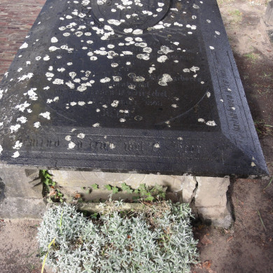 Op de dekplaat van de tombe staat langs de rand de inscriptie: "Ik heb Uw gerechtigheid bemind en Uwe wet o Heer had ik boven alles lief". Op de dekplaat de inscriptie: "Ter gedachtenis van / Mr. A.J.L. van Laar geb. te Oirschot / aldaar overleden den 26 januari 1889 / s.s.t.t. / en / Vrouwe M.L.J. van Hees geboren / te Maastricht / en overleden te Oirschot / den 22 januari 1868 / R.I.P.".
