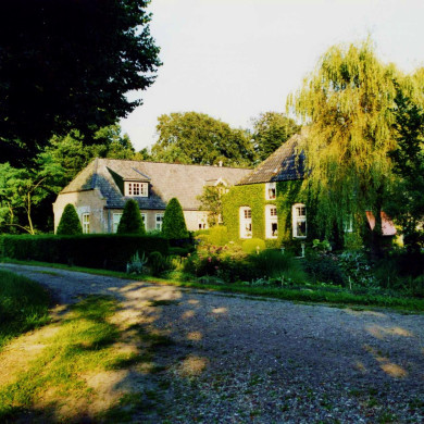 BOUWHUIZEN. Twee eenvoudige bakstenen gebouwen, eerste kwart twintigste eeuw; één bouwlaag onder schilddak met grijze pannen; in het westelijk bouwhuis een woning achter de noordelijke kopgevel met drie H-ramen; merkwaardig is het feit dat de gebouwen achter het hoofdgebouw staan; het benadrukt daardoor het agrarische karakter van de buitenplaats.