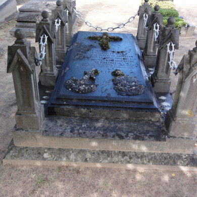 Aan de westzijde van de poort van de R.K. begraafplaats van Oirschot staat het GRAFTEKEN van J. van Turing van Ferrier. Het graf dateert uit omstreeks 1902. Het graf is neo-gotisch gedetailleerd.