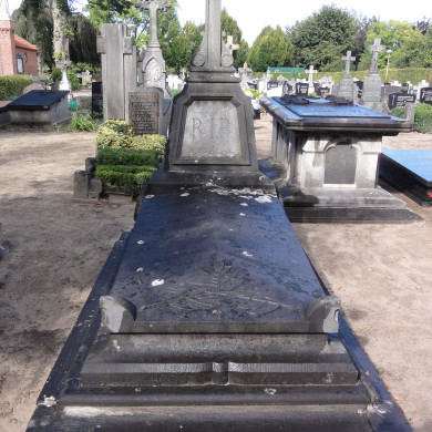 Centraal op de door beukenhaag en muren omgeven R.K. begraafplaats van Oirschot staat, in de as van het middenpad, een bakstenen BAARHUIS met neo-gotische stijlelementen, met een op de zuidelijke gevel geplaatste CALVARIEGROEP uit omstreeks 1880-'90.