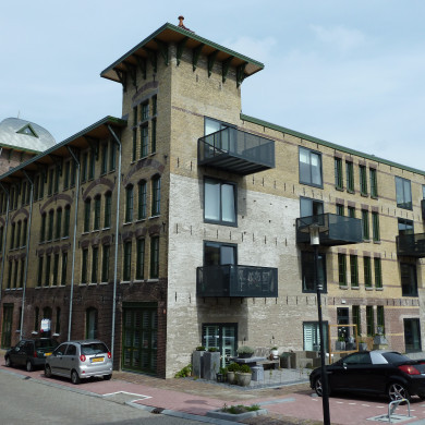 PAKHUIS MET KANTOOR, omstreeks 1910 gebouwd in Overgangsstijl als groothandel, mogelijk gesticht in 1910 door de familie Reijnders en spoedig overgenomen door Bernard Hartelust, een familienaam die naamgever is geworden van het gebouw. Hartelust maakte als afdeling deel uit van de NV Nederlandsche IJzerhandel.