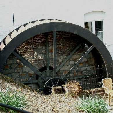 WATERMOLEN, XVIII-c; ten noordoosten van het kasteel naast de oprijlaan en de grote molenvijver; witgeschilderd bakstenen gebouw van twee bouwlagen op rechthoekige plattegrond; zadeldak met grijze pannen; de zuidkant van de westgevel is uitgebouwd onder een mansarde kap; hier tegenaan staat een lagere aanbouw onder flauwhellend zadeldak met een hoge vierkante bakstenen schoorsteen; ramen en deuren van het hoofddeel hebben segmentboogomlijstingen van Naamse steen; ramen met 6-lichtsvensters.