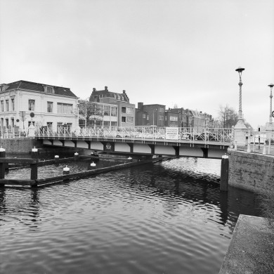 DRAAIBRUG gebouwd in 1895 naar ontwerp van de directeur der gemeentewerken J.E.G. Noordendorp met assistentie van civiel-ingenieur L. van Krimpen. De brug verbindt de binnenstad met het Nieuwe Kanaalgebied. De brug is geslagen op de plaats, waar in 1894 nog een aaneengesloten rij herenhuizen stond. Zeven huizen moesten onmiddellijk worden afgebroken. De brug is vervaardigd door de Koninklijke Nederlandsche Grofsmederij te Leiden. Het type is een gelijkarmige draaibrug met handbediening. Aanvankelijk werd de brug afgesloten met kettingen. In de jaren '20 kwamen er afsluitbomen, die thans ook weer vervangen zijn. Bewaard bleven de vier monumentale gietijzeren lantarens in eclectische stijl. Ze dragen de opschriften `ANNO' en `1895'. De firmanaam is te lezen op een rolwerkcartouche aan de oostzijde van de brug en aan de westzijde is het stadswapen van Leeuwarden aangebracht. In 1906 werd er een brugwachterswoning gebouwd op de hoek van de Zuidergrachtswal en de Kanaalstraat. Eind jaren '20 werd op het zuidelijke landhoofd een klein bedieningshuisje gezet. In de jaren zeventig voldeed de nog steeds handmatig bediende brug niet meer, maar vervanging stuitte op verzet van Monumentenzorg en buurtbewoners. In 1983-'84 werd de brug ingrijpend gerestaureerd en in 1996 werden de oorspronkelijke kleuren hersteld. Het bedieningshuisje werd in oude vormen hersteld.
