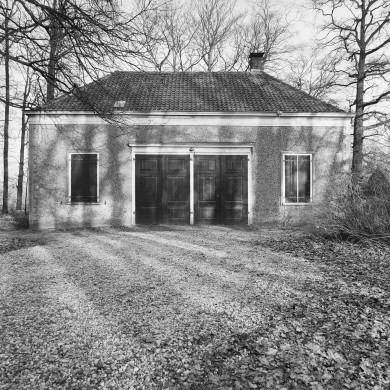 KOETSHUIS behorende tot de historische buitenplaats Blikkenburg. Ten zuidoosten van het hoofdgebouw ligt een koetshuis met L-vormige plattegrond, waarin aan de voorzijde een rijtuigenstalling (links) en een dienstwoning (rechts) zijn ondergebracht, terwijl in de vleugel linksachter een paardenstal gesitueerd is. Het pand bestaat uit één bouwlaag en een zolder onder een omlopend schilddak gedekt met blauwe pannen. Centraal in de symmetrische, gepleisterde voorgevel twee paar koetsdeuren onder één kroonlijst met daarboven een wapenschild. Ter weerszijden van deze middenpartij een meerruitsschuifvenster in empire-stijl met luiken. In de linker zijgevel rechts twee halfronde stalramen met spaakroeden, ter hoogte van de daar achter gelegen stal is de gevel blind. De rechter zijgevel, tevens voorgevel van de dienstwoning, heeft een iets uit het midden geplaatste eenvoudige toegangsdeur met meerruitsbovenlicht geflankeerd door vensters met luiken als in de voorgevel. Het rechterdeel van de woning is onderkelderd en voorzien van een laag keldervenster met luiken. In de 20ste eeuw hebben er enige beeldbepalende wijzigingen plaats gevonden. Zo is er een langgerekte dakkapel met meerruitsvensters aangebracht en is er aan de rechterzijde een lage, ondiepe aanbouw geplaatst, voorzien van een voordeur, die sindsdien als toegang van de woning fungeert. Aan de achterzijde van het koetshuis bevindt zich in de ruimte tussen aanbouw en stalvleugel een dubbele inrijdeur. De aangrenzende zijgevel van de stal is voorzien van twee halfronde stalramen met spaakroeden. De achtergevel van de stal heeft aan de linkerzijde een toegangsdeur met meerruitsbovenlicht en centraal in de top een venster met meerruitsbovenlicht en halve luiken. Zowel de indeling als de afwerking van het interieur van de rijtuigenstalling en de paardenstal zijn sinds de bouwtijd gaaf bewaard gebleven. In de rijtuigenstalling is de rechterwand voorzien van een betimmering met rijen knoppen en verschillende soorten steunen voor het ophangen van paardentuig en aanverwante benodigdheden. De westzijde van de stal is ingedeeld in paardenboxen die met bomen van elkaar gescheiden zijn. De bomen hangen tussen de muur en houten kolommen, waaraan een pen bevestigd is voor het ophangen van paardentuig. Aan de wand hangt boven iedere box een halfronde, ijzeren ruif. Centraal tegen de oostelijke wand bevindt zich een waterpomp. De stal is intern middels een toegangsdeur verbonden met de rijtuigenstalling en is buiten de boxen voorzien van een klinkerbestrating.