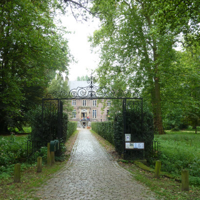 INRIJHEK, deels XIX of ouder; aan het begin van de Kasteellaan; twee nieuwe bakstenen kruispijlers met nieuwe dekplaten, waarop natuurstenen pijnappels (XVIII?); de ijzeren hekvleugels zijn 19e eeuws: eenvoudige hekken met gepunte spijlen, in het midden boogvormig verlaagd.