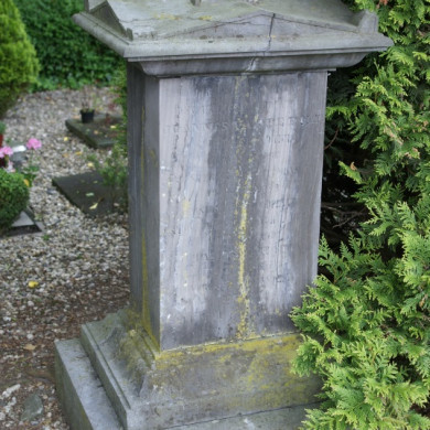 Zeeland 18 april 1832 / doet afstand / van zijne pastoreele benoeming / 20 april 1857 / overl. te Ravenstein voorzien / met de H.H. Sacramenten / 19 october 1876". Het opstaande kruis van het monument ontbreekt.