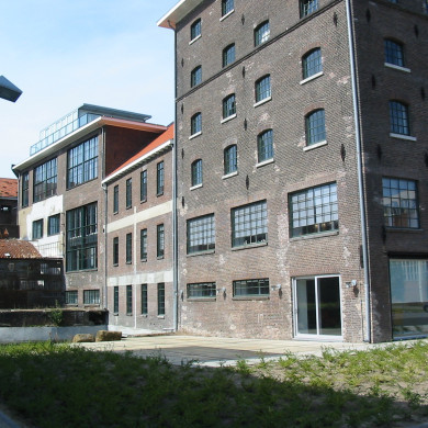 De eerste en de tweede bouwlaag bezitten rechthoekige en vierkante vensters met bakstenen lekdorpels, strekken en veelruits ijzeren ramen. In de eerste bouwlaag bevinden zich in de zuidoostelijke gevel twee bedrijfsingangen. De vier bovenste bouwlagen bezitten reeksen getoogde vensters met segmentbogen, hardstenen lekdorpels en veelruits ijzeren ramen. De bakstenen uitgemetselde rollaag onder de vensters in de vijfde bouwlaag doet hier dienst als lekdorpel. De zuidoostelijke zijde heeft ten behoeve van grotere laad- en losopeningen wijzigingen ondergaan. De gevels bezitten gietijzeren geornamenteerde ankers.