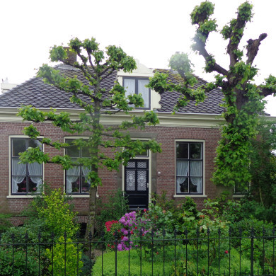 Het erf is recent aan de achterzijde verkleind ten behoeve van niet aangepaste nieuwbouw. Op het erf staat nog een zomerhuis, een spoelhok en een hooiberg, alsmede twee leilinden vóór het huis. Ter erfafscheiding staat langs de weg een smeedijzeren spijlenhek.
