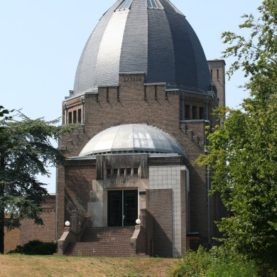 CREMATORIUMGEBOUW uit 1912-'13, deel uitmakend van het crematoriumcomplex Velsen. Het op een natuurlijke duintop gesitueerde crematoriumgebouw is ontworpen door de Hilversumse architect M.A. Poel die werd bijgestaan door architect P.L. Kramer, één van de latere voormannen van de Amsterdamse School. Poel was slechts gedeeltelijk bij de uitvoer betrokken, omdat hij na tal van conflicten tijdens de bouw van zijn functie als uitvoerend architect werd ontheven. Onder leiding van Kramer werd het gebouw voltooid. Het gerealiseerde gebouw wijkt in de geleding van de gevel, de detaillering, en de uitvoering van de koepel sterk af van het door Poel in 1911 gemaakte ontwerp, wat mogelijk betekent dat P.L. Kramer naast de uitvoering ook een deel van het ontwerp naar zich heeft toegetrokken. De hoofdvorm van het crematoriumgebouw is ontleend aan contemporaine crematoria in Duitsland waar al langer gecremeerd werd. De architectuur vertoont invloeden van het rationalisme van Berlage en van het art déco. Het interieur van de aula is vermoedelijk omstreeks 1926 naar ontwerp van architect W.M. Dudok gemoderniseerd.