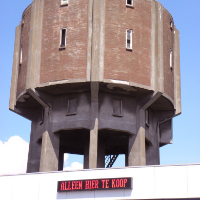 De 24,50 m hoge watertoren heeft een achthoekige open onderbouw, bestaande uit een constructie van acht gewapend betonnen pijlers rondom een centrale buizenkoker, waarop een uitkragende reservoir-ommanteling met een cirkelvormige doorsnede en een plat dak. In de onderbouw worden de acht pijlers op vier hoogtes horizontaal met elkaar verbonden door koppelbalken van gewapend beton. Vlak boven de onderste koppelbalken hebben de enigszins naar binnen wijkende pijlers aan de buitenkant een afwaterende versnijding. De ruimte tussen de pijlers is tot aan deze op circa drie meter hoogte aangebrachte koppelbalken afgesloten. Hier zijn de dienstlokalen gesitueerd, toegankelijk via een opgeklampte deur in de noordoost- en de zuidmuur. De noordwestmuur is voorzien van een vierruits raam; in de overige gevels bevindt zich een tweeruits liggend raam. Het via ijzeren steektrappen bereikbare bovenste gedeelte van de onderbouw, waar zich de lekvloer bevindt, is eveneens afgesloten en aan de oostkant naar voren uitgebouwd. In het midden van elke zijde bevindt zich een vierruits stolpraam (enkele ontbreken). De acht pijlers zetten zich voort langs dit gedeelte en de reservoir-ommanteling. De tussenliggende muurvlakken van de laatste zijn niet uitgevoerd in beton, maar gemetseld in rode machinale waalsteen in kruisverband. In het midden van elk van deze muurvlakken bevindt zich een smal vierruits raam en bovenin een klein vierkant raam. De betonnen delen van de watertoren zijn afgewerkt met een laag fijn grind. Het cilindervormige hoogreservoir is voorzien van een vlakke bodem en uitgevoerd in gewapend beton. Het reservoir heeft een diameter van 11,25 m en een inhoud van 600 kubieke meter.