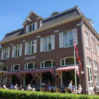 CAFE-RESTAURANT "Duinvermaak" dateert in oorsprong uit de negentiende eeuw, maar heeft in 1913 het huidige aanzien in Nieuw-Historiserende trant gekregen naar ontwerp van J.C. Leyen in opdracht van C. Bruin. Het lage gedeelte achter het hoofdvolume dateert van voor 1913. Gevelsteen: Eerste steen gelegd door Klaas Bruin op 24 dec. 1913, oud 17 jaren. De architect ontwierp eveneens het interieur met de bar. Het glas-in-lood in de bovenlichten is vervaardigd door de glazenier Willem Bogtman. Het pand ligt aan de noordkant van Bergen tegen de duinrand aan.