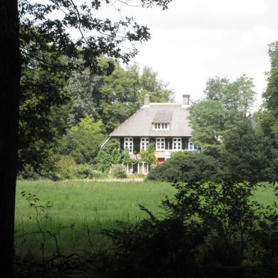 HOOFDGEBOUW (Darthuizen). Het hoofdgebouw ligt iets verhoogd en centraal in het landschapspark. De ligging is zo gekozen dat de bewoners vanaf de voor- en achterzijde optimaal zicht hebben op de door bos omzoomde weilanden rondom het huis. Het rood bakstenen huis op rechthoekige grondslag bestaat uit twee bouwlagen en een zolder onder een met riet gedekt schilddak dat aan de voor- en achterzijde iets hoger is opgetrokken; op de nokeinden twee schoorstenen. De symmetrische voorgevel telt vijf traveëen; in de middelste travee een gepaneelde toegangsdeur waarboven een halfrond bovenlicht met spaakroeden; de deur wordt geflankeerd door meerruitsvensters, waarboven halfronde, afgeplatte ontlastingsbogen met spaarveld; op de bovenverdieping vijf meerruitsvensters; ter hoogte van de zolder een halfrond venster met spaakroeden. Met uitzondering van het dakvenster zijn alle vensters voorzien van gepaneelde luiken. In de rechterzijgevel op de begane grond twee driezijdig uitgebouwde meerruitsvensters met bovenlicht en persiennes; op de verdieping centraal twee meerruitsvensters; ter hoogte van de zolder een halfrond venster met spaakroeden. In de linker zijgevel centraal een eenvoudige toegangsdeur met halfrond bovenlicht met spaakroeden; links van de deur een groot meerruitsvenster voorzien van gepaneelde luiken; rechts een klein getralied venster; op de verdieping centraal een driestrooksvenster en rechts twee kleine vensters als op de begane grond; ter hoogte van de zolder een halfrond venster met spaakroeden. Aan de achterzijde op de begane grond vier paar openslaande deuren met gepaneelde luiken en een hoge glaspartij op de middenas (oorspronkelijk een erker); op de verdieping drie paar openslaande deuren met bovenlicht en persiennes en op de middenas en uiterst rechts een meerruitsschuifvenster met persiennes. Oorspronkelijk was er over de volle breedte van het huis een balkon aangebracht, gedragen door betonnen Dorische zuilen en voorzien van een houten balustrade met gedraaide balusters. Na aankoop door de familie Den Boer in 1967 werd het balkon met drievijfde deel verkleind, zodat het sindsdien nog slechts de twee rechter traveëen siert. Op de begane grond uiterst rechts in de gevel een klein meerruitsvenster met luik; ter hoogte van de zolder twee gekoppelde meerruitsvensters. De openslaande deuren aan de achterzijde geven toegang tot een terras betegeld met decoratieve tegels uit de bouwtijd.