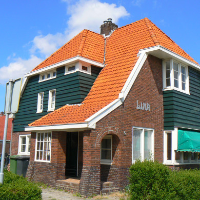 WOONHUIS gebouwd in de jaren dertig in opdracht van aannemer H? Dijkhuis. Het pand is gebouwd door de aannemers Dijkhuis en Geert Kuiper in een stijl waarin Amsterdamse School en Engelse landhuisstijl elementen zijn te herkennen. De naam `Lina' is afkomstig van de dochter van de opdrachtgever. De garage, gelegen links achter de woning, stamt uit 1958 en komt wegens te geringe ouderdom niet voor bescherming van rijkswege in aanmerking.
