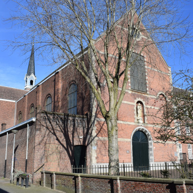 De Neo-barokke kerk behoort tot en is vastgebouwd aan het capucijnenklooster op nummer 165. De stijl grijpt terug op die van de achttiende eeuw. De kerk is gebouwd in 1880-1882 naar ontwerp van broeder Valenus van Deurne en heeft een voor deze orde zeldzame kruisvorm. Diverse beelden van het Heilig Hart van Maria in het gebouw en tegen de voorgevel wijzen haar aan als patrones van de kerk.