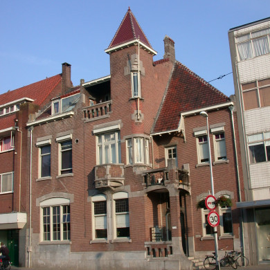 Het Art Nouveau pand werd gebouwd als HERENHUIS in 1899-1900 naar ontwerp van architect Jan van der Valk voor de fabrikantenfamilie F.M. Sträter-Bogaers. Het pand is onderverdeeld in appartementen. De raamindelingen en het interieur zijn daarbij vereenvoudigd.