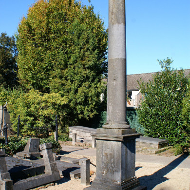 Het grafmonument is opgebouwd uit een hoge hardstenen sokkel op vierkante grondslag, met daarboven een zandstenen Dorische zuil. Op de noordelijke zijde van de sokkel is een zichzelf in de staart bijtende slang afgebeeld en de inscriptie R.I.P.. Op de tegenoverliggende zijde een kruis en de inscriptie D.O.M.. Op de schacht van de zuil is een wapenschildje aangebracht, waarin drie kruisen en drie schilden zijn afgebeeld. Dit wapenschildje is vrij sterk verweerd.