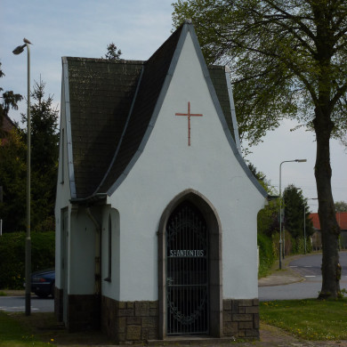 De KAPEL heeft een rondboogvormige entree met hardstenen deuromlijsting. De entree kan worden afgesloten door een siersmeedijzeren hek met de inscriptie: H. Antonius. Boven de entree bevindt zich een kruisje van ingemetselde strips van tegels. In de rechter- en linkerzijgevel zitten lancetvormige vensters met glas-in-lood.