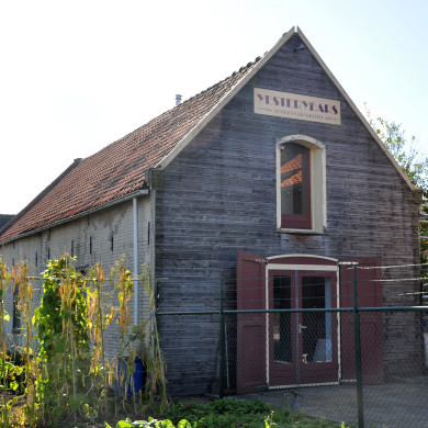 De Industriestraat ligt vlak vlakbij de binnenhaven van Lage Zwaluwe. Hier vestigden zich van oudsher vooral kleine bedrijven die op een of andere wijze waren gelieerd aan haven en water. De LANDBOUWSCHUUR of WERKPLAATS, hier doorgaans griendwerkerskeet genoemd, is zeer waarschijnlijk omstreeks het laatste kwart van de negentiende en het eerste kwart van de twintigste eeuw gebouwd. Een exacte datering ervan is niet bekend, evenmin als een aannemer of opdrachtgever. Er stonden in deze straat omstreeks 1940 ten minste tien van dergelijke keten; in het gehele dorp stonden er enkele tientallen. Ze werden door de griendwerkers gebruikt als een verblijfplaats gedurende het seizoen waarin zij in de grienden nabij Hoge en Lage Zwaluwe en in de Biesbosch werkten. Of ze er daadwerkelijk waren gehuisvest gedurende het seizoen,zoals in de Biesbosch wel gebruikelijk was, is onduidelijk. Vermoedelijk was dit niet het geval, daar bijvoorbeeld een stookplaats ontbreekt.