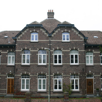 Voormalig blok van twee HOOFDOPZICHTERSWONINGEN, 1913, in een door elementen van Neo-Renaissance beïnvloede traditionele stijl. Gebouwd in opdracht van de particuliere Maatschappij tot Exploitatie van Limburgse Steenkoolmijnen Oranje Nassau, naar een ontwerp van het bouwbureau van deze mijnonderneming.