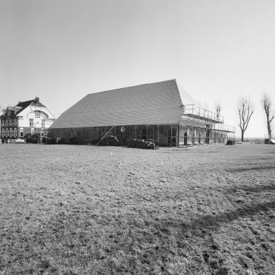 De LANDBOUWSCHUUR is gesitueerd aan de westzijde van de dreef. De kern van deze oorspronkelijk gepotdekselde schuur dateert uit 1832. Getuige het geveljaartal aan de noordzijde werden de oorspronkelijk gepotdekselde wanden in 1914 vervangen door in kruisverband gemetselde, bakstenen muren.