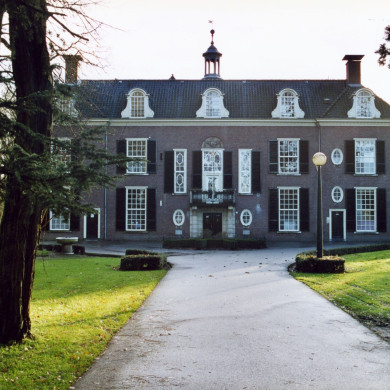 In park gelegen herenhuis, gedateerd 1828, met verdieping en omlopend schilddak. Deur met bovenlicht en in de parterre vensters met zesruitsschuiframen.