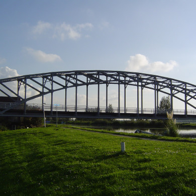 IJzeren TRAMBRUG over de Vlaardingervaart, van het type vakwerk boogbrug met trekband, door Werkspoor Amsterdam gebouwd in 1912 ten behoeve van de Westlandsche Stoomtram Maatschappij. Deze maatschappij was opgericht voornamelijk ten behoeve van het vervoer van Westlandse tuindersproducten naar de spoorwegstations. De oorspronkelijke infrastructuur is verdwenen maar het tramstation van Schipluiden, vergelijkbaar met het eveneens nog bestaande tramstation van Naaldwijk, is nog aanwezig. De brug is tot 1968 voor tramverkeer in gebruik geweest en tegenwoordig in gebruik als fietsbrug.