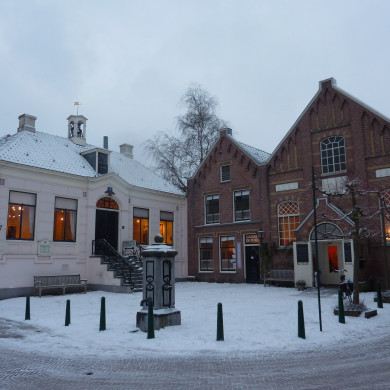 De zandstenen DORPSPOMP uit 1871 op het centrale dorpsplein van Warmond is recentelijk gerestaureerd.