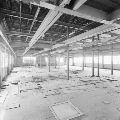 De gevels van het acht bouwlagen tellende fabriekspand worden ingenomen door door stalen roeden ingedeelde lintvensters gevat tussen uitkragende vensterdorpeltegels en kunststenen latei. De vensters bevatten geschakelde kantelraampjes. De tweede bouwlaag is ten opzichte van de overige in hoogte afwijkend. Aan de zuidzijde van de oostgevel is een grotendeels beglaasde luchtbrug geslagen naar het tegenoverliggende silogebouw uit 1937. In deze oostgevel komt ook per verdieping een hijsluikopening voor onder een in het midden van de gevel geplaatste hijsbalk onder de borstwering van de dakrand. De in de zuidelijke eindgevel aangebrachte luchtbrug, is van ondergeschikte betekenis voor de bescherming. Het interieur van het riffellokaal bevat een volledig geklonken staalskelet met gewalste kolommen bestaande uit versterkte breedflensprofielen, waarop kinderbinten en een houten planken vloer en een afdekvloer. Deze samenstelling en materiaalkeuze stond vrijelijk het verplaatsen van machines en onderdelen als drijfriemen toe, als het (verdiepingsgewijze) productieproces daarom vroeg.