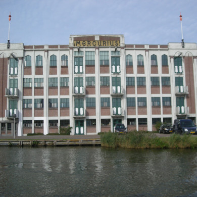 Vrijstaand en omvangrijk voormalig FABRIEKSPAND 'Mercurius' uit 1919-1921, deel uitmakend van het gelijknamige pellerijcomplex. Het voor opslag, graanwerking en schaft- en kleedlokalen bestemde pand werd in opdracht van de N.V. Koninklijke Pellerij 'Mercurius' voorheen Gebroeders Laan gebouwd naar ontwerp van de Wormerveerse aannemer-architect Mart J. Stam. De toepasssing van gewapend beton is op eigentijdse decoratieve wijze in de architectuur van het pand verwerkt, in combinatie met Art Déco kenmerken. 'Mercurius' was een van de latere uitbreidingen van het fabriekscomplex dat rond 1920 het hele terrein ten oosten van de Zaanbrug in beslag nam. Het pand was in oorsprong door een luchtbrug verbonden met het naburige pakhuis 'Koningsbergen'. Tegenwoordig (1999) is gebouw Mercurius, na restauratie in 1995-1997 door Jan Boot, in gebruik bij de provincie Noord-Holland als provinciaal archeologisch depot.