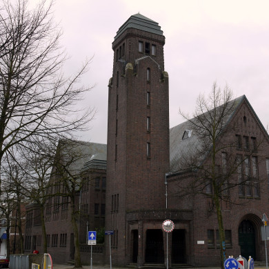 In de negentiende-eeuwse schil van Dordrecht gesitueerde KERK van het type kruiskerk met KOSTERSWONING uit 1921, gebouwd naar een ontwerp van de Dordtse architecten B. van Bilderbeek en H.A. Reus in een aan het Rationalisme verwante bouwstijl. De kerk werd gebouwd in opdracht van de Christelijk Gereformeerde Gemeente door de aannemersfirma Gebr. H. van Loon. Het kerkgebouw is prominent gesitueerd op het kruispunt van de (Nicolaes Maes)Singel en de Dubbeldamseweg met de noord-zuidgerichte lengteas parallel aan de Dubbeldamseweg. Het kruispunt wordt extra benadrukt door de hoge hoektoren.