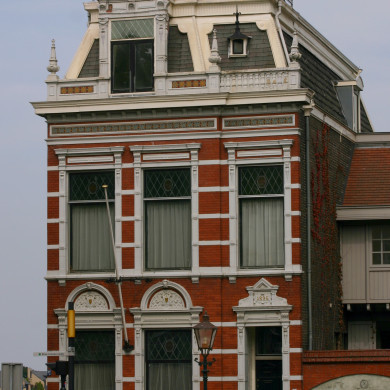 WOONHUIS uit 1896 in de stijl van de Neo-Hollandse Renaissance. In 1909 is het pand rechtsachter, op het belendende perceel, uitgebreid met een nieuwe keuken en bergplaats.