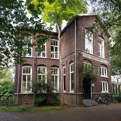 Voormalige, in 1865 gebouwd gymnasium; neo-classicistisch, blokvormig pand met verdieping onder met leien gedekt omlopend schilddak; 5 vensterassen brede, gebosseerde hardstenen voorgevel met cordonlijsten, met 8-ruits schuiframen en dubbele deur met bovenlicht en afgesloten door forse kroonlijst