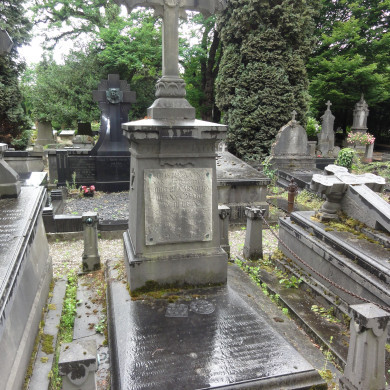 GRAFMONUMENT voor Dorothea A.J.M. van Beugen (1845-1929) en haar ouders, omstreeks 1888 in Eclectische vormen vervaardigd door I. Schonemaker. Dorothea leefde als lid van de franciscaner lekenorde en kocht, als kind van schatrijke ouders, een terrein in de Bossche wijk Het Zand aan en liet daarop het kapucijnenklooster bouwen. Het sobere graf is gelegen op de eerste rij aan de rechterzijde van de bisschopskapel in sectie 21-13-01-06.