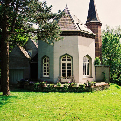 Gedeeltelijk vrijstaand woonhuis van één bouwlaag op rechthoekige grondslag met een 3/8 sluiting en een achtkante traptoren met spits. De achtergevel (zuidzijde) is getrapt. De gevels zijn opgetrokken in baksteen en zijn aan alle zijden gepleisterd, deels in blokverband. Het pand is voorzien van een zadeldak met driezijdig schild aan de voorzijde en is gedekt met leien. De dakbedekking is deels vernieuwd. Het pand is aan de noordzijde gedeeltelijk onderkelderd. De traptoren is voorzien van in gele baksteen gemetselde, omlopende speklagen en heeft smalle, kruisvormige openingen voor de lichttoetreding. Het metselwerk is in kruisverband aangebracht. De kroonlijsten van zowel het huis als de traptoren zijn rijk geornamenteerd met onder meer kleine consoles en metopen. Verder is er onder de goot een omlopend muizentandfries met siermetselwerk daaronder aangebracht. De getrapte gevel heeft drie met een tudorboog getoogde gevelopeningen waarvan de kozijnen en ramen vernieuwd zijn. De opmerkelijke 3/8 sluiting aan de straatzijde heeft twee vensters en een openslaande dubbele glasdeur. Deze zijn alle getoogd met een tudorboog en hebben een geprofileerde omlijsting. De vensters hebben vierdelige ramen met een roedenverdeling. In de dakschilden zijn rond 1980 vierkante vensters met tuimelramen aangebracht. Aan de voorzijde van het huis bevindt zich tegen de zijgevel en de traptoren aan een lage blokvormige aanbouw onder een plat dak. Deze aanbouw dateert uit de bouwtijd van het woonhuis en heeft een rechthoekig venster aan de westzijde. Aan de oostzijde bevinden zich drie, in 1981 aangebrachte bouwvolumes onder zadeldaken die buiten de van rijkswege geldende bescherming vallen. Intern is de indeling enkele malen gewijzigd. De meeste oude elementen zijn nog aanwezig in de kamer aan de straatzijde. Deze heeft nog een plafond van moerbalken met opgelegde kinderbinten. De sleutelstukken zijn voorzien van een kraalprofiel. In de scheidingswand tussen de voor- en de achterkamer is een deuropening aangebracht met een houten omlijsting en overspannen met een tudorboog. De houten deuren zijn opgeklampt. In de negentiende eeuw is onder de moerbalken een onderslagbalk op een centraal geplaatste houten staander aangebracht. De houten gordingenkap is bij de modernisering van het huis in het begin van de negentiende eeuw opgetrokken met hergebruik van enkele elementen van de eiken voorganger. Op enkele delen zijn nog de gegutste telmerken zichtbaar. De verbindingen bestaan deels uit houten toognagels en zijn deels gespijkerd. De voorkamer is vrijwel geheel onderkelderd en heeft een vlak plafond. Het kelderniveau komt iets boven de begane grond uit en zorgt voor een klein niveauverschil in de woonkamer. In de negentiende-eeuwse achterkamer is op, wat waarschijnlijk, de boezem van een verwijderde schouw is, een polychrome beschildering aangebracht van het familiewapen van de familie Levis de Mirepoix. De noordelijke muur van deze kamer bestaat nog grotendeels uit metselwerk van het eerste gebouw. Dit metselwerk is grotendeels in het zicht gelaten. Hierin zijn de contouren van een dichtgezet venster zichtbaar.
