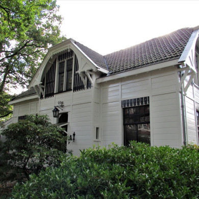 Voormalige TUINMANSWONING, gebouwd in 1902 in Chalet-stijl naar het ontwerp van E. Verschuyl in opdracht van G. van Mesdag als onderdeel van het landgoed "Quatre Bras" en gesitueerd op de hoek van de Beethovenlaan en de Bussumergrintweg.