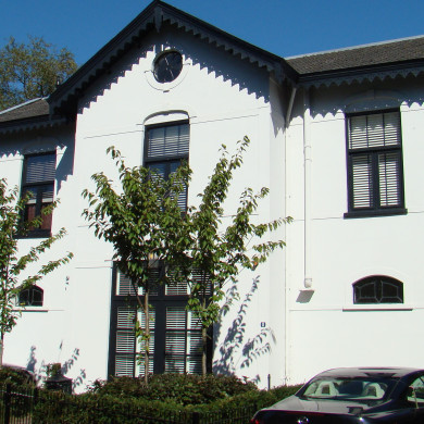 (Voormalig) KOETSHUIS in schilderachtige eclectische trant uit omstreeks 1880 met bijbehorende ERFSCHEIDING, gesitueerd in villawijk 'De Boomberg'. Het pand ligt dicht langs de Peerlkamplaan.