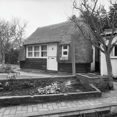 TUINHUISJE, eertijds genaamd "Tyltyl", behorend bij de in 1921 afgebrande trits villa's "Tamelone", "Meneva" en "Rogier", ontworpen in 1917-18 door P.L. Kramer in Amsterdamse Schoolstijl als onderdeel van het villapark "Meerwijk".
