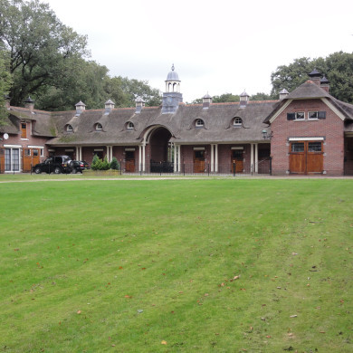 Het STALGEBOUW is gebouwd in 1916 door A. Jacot (1864-1927) in de stijl van de heroriëntatie op traditionele bouwwijzen met elementen van de Engelse landhuisstijl en van het werk van K.P.C. De Bazel. De vorm van de plattegrond, het rieten dak met de dakkapellen en de ontluchtingskokers en de onderdoorgang met het klokkentorentje lijken beïnvloed te zijn door Melkerij "Oud-Bussem" van K.P.C. De Bazel uit 1903. Het stalgebouw heeft evenals de melkerij een symmetrische U-vormige aanleg met een accent in het midden, traditionalistische kenmerken zoals het klokkentorentje en een zorgvuldige afwerking van de details.