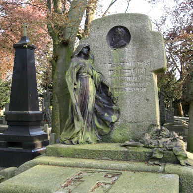 - Van kunsthistorische waarde als voorbeeld van een grafmonument in de stijl van de Art Nouveau met rijk uitgevoerd beeldhouwwerk in brons, waaronder een levensgroot beeld.