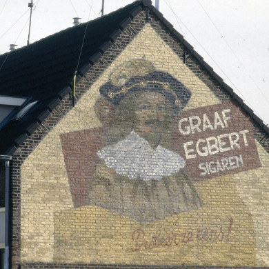 Reclame-MUURSCHILDERING voor graaf Egbert-sigaren, begin 20ste eeuw.