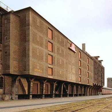 Voormalig PAKHUIS 'AFRIKA' met laad- en lossteiger, in opdracht van de N.V. Handelskade gebouwd in 1915 naar ontwerp van A.J. Joling en in 1935 aan de buitenkant ingrijpend verbouwd door de architect J. de Bie Leuveling Tjeenk in een stijl die invloed van het Functionalisme vertoont. De monolitische betonskeletstructuur, uit 1915 is een vroeg voorbeeld van het 'mushroom' systeem in Nederland.